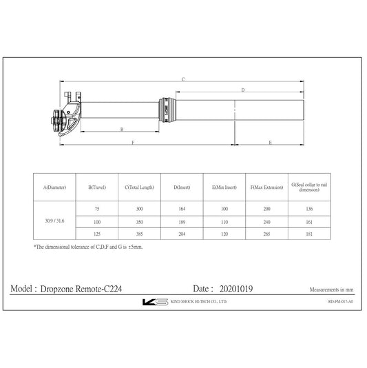 KS KIND SHOCK DROPZONE REMOTE Telescopic Seat Post