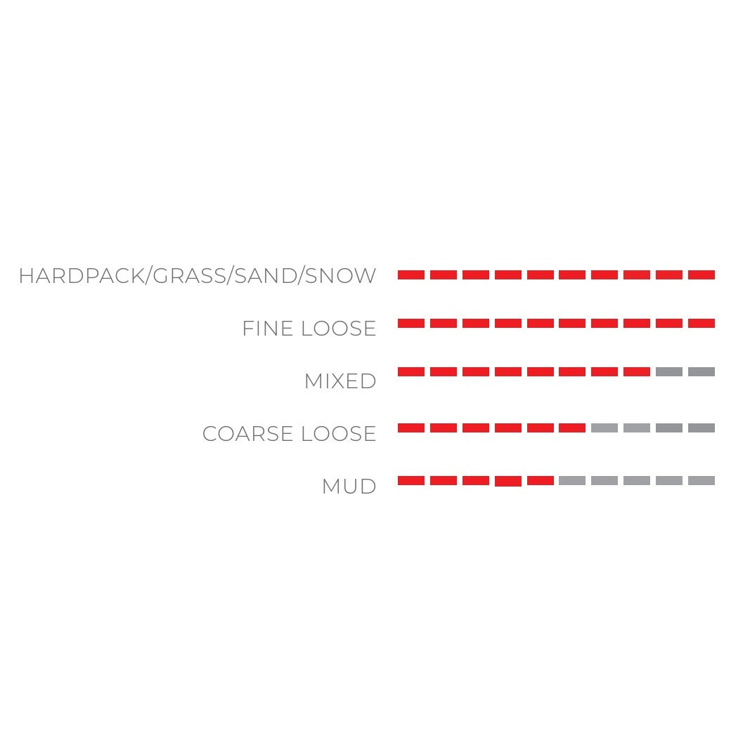 The Flying Doctor (FD) casing is made from 87.5% cotton and 12.5% Kevlar. It is lighter than the 100% cotton carcass and more resistant to sharp edges on the sidewalls. The carcass remains stable in the most extreme bends, even at low pressures. The neoprene lining, with its 0.1 mm silica protection, prolongs hose life by preventing the absorption of moisture and mud, without compromising performance or comfort.Dugast's unique 2C rubber provides grip and durability.