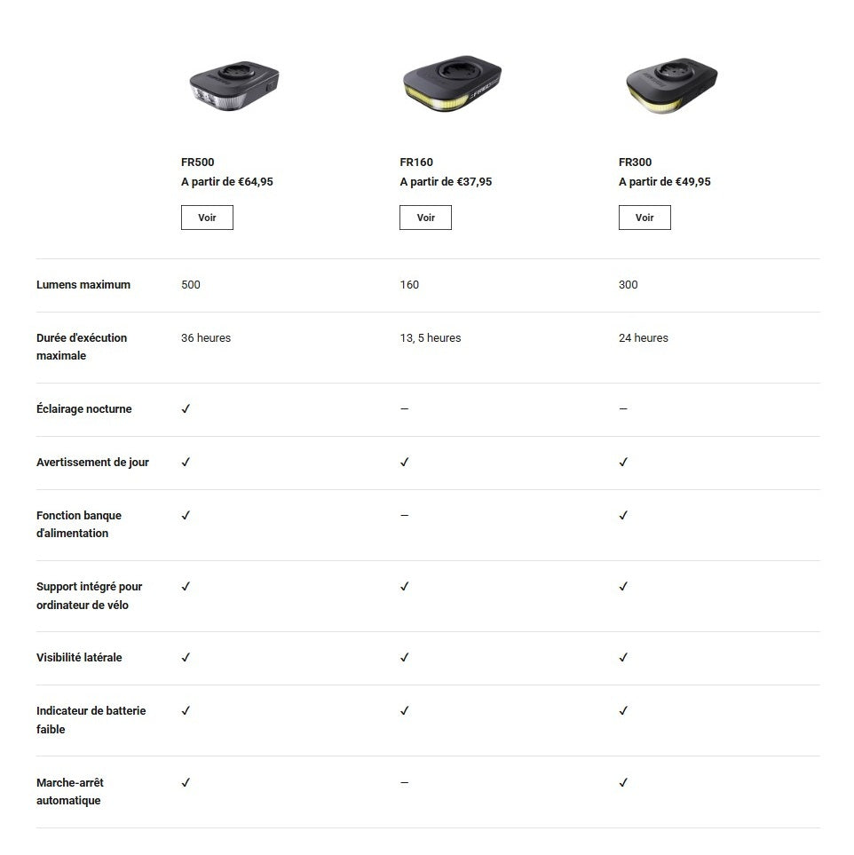 Its 2000 mAh Li-polymer battery provides up to 36 hours of autonomy and can be used as a powerbank for accessories. Water-resistant (IPX6) and featuring an aluminum alloy design to dissipate heat, the FR500 ensures performance, safety and durability on all your outings.