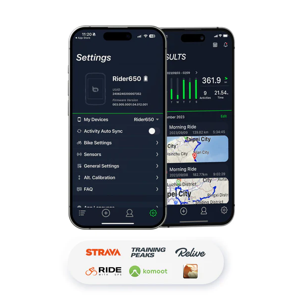 Connectivité avancée – Synchronisation automatique avec Strava, Komoot, TrainingPeaks et l’application Bryton Active.