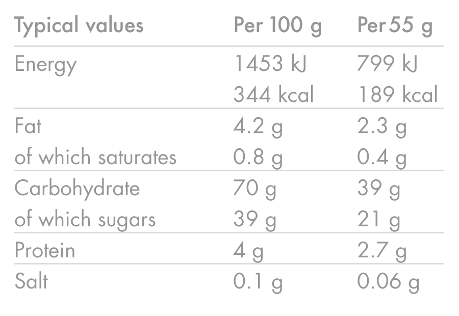 ⚡ Snabb, långvarig energi En balanserad blandning av enkla och komplexa kolhydrater för att stödja din prestation.