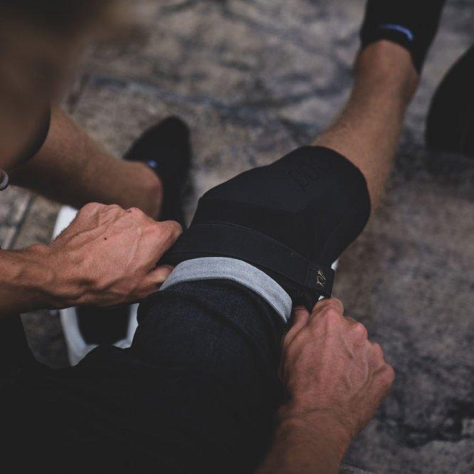 Håller knäskyddet på plats efter ett fall.
